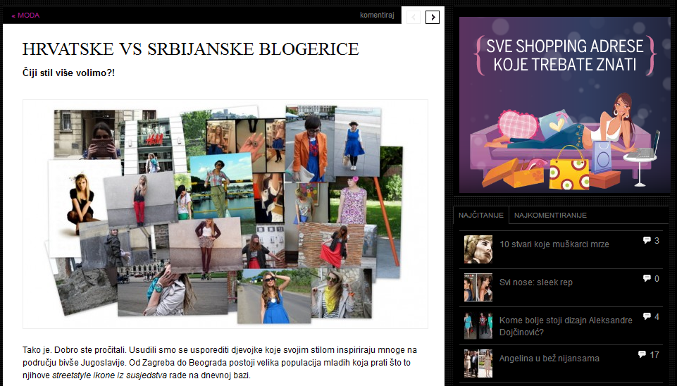I love the feeling when I see myself in an article. I will be sooo happy when I find myself in some magazine, that will be the proof that my work is good. And I adore newspapers and magazines! Today, I found my name on a website from Croatia, Fashion.hr They are great, and their site is one of the best in our region. On a menu today are bloggers, of course :) We vs them, Serbian bloggers vs Croatian bloggers.